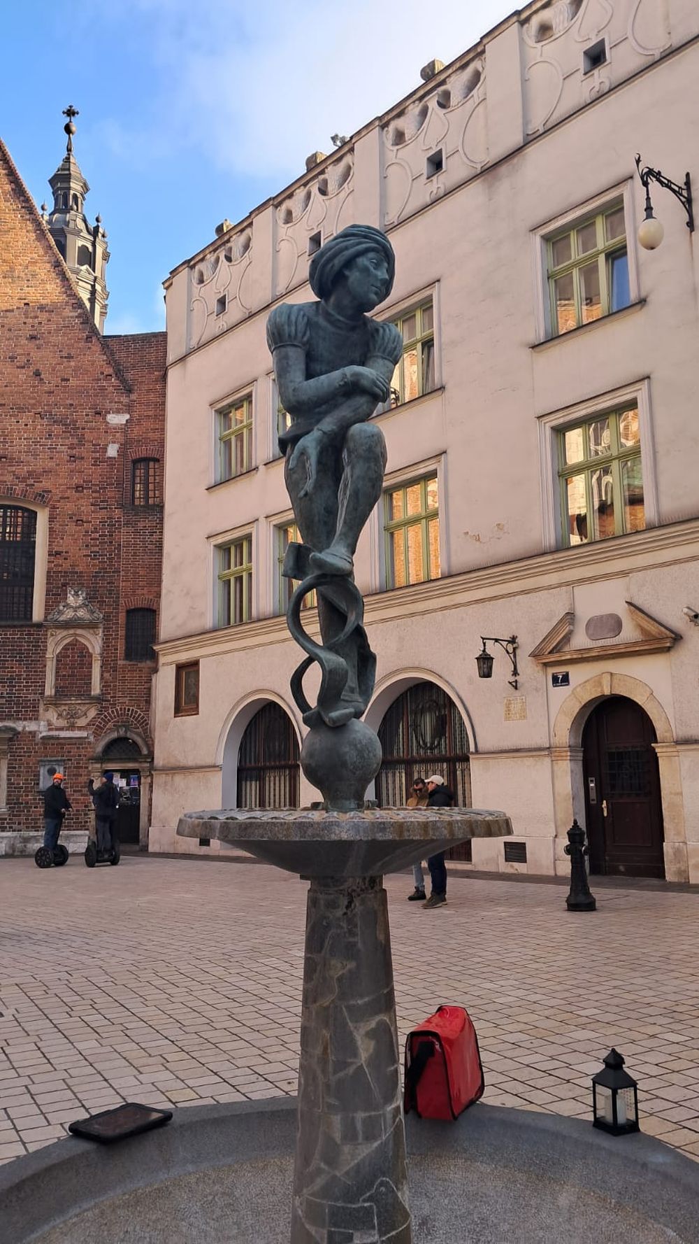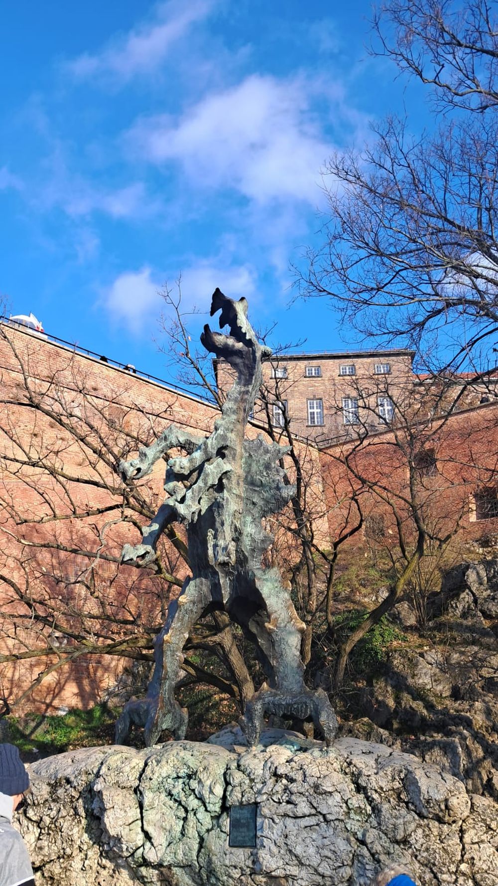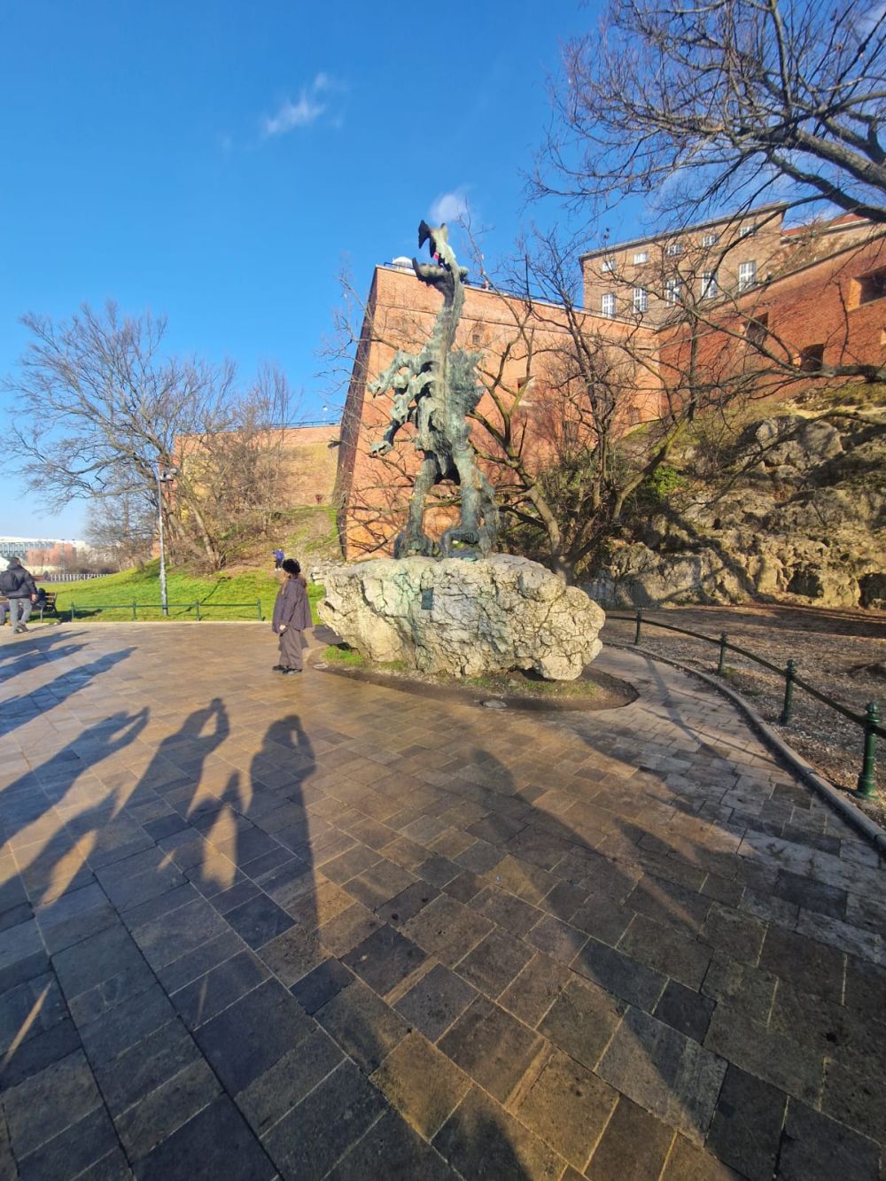 Młodzi podróżnicy zwiedzanie miasta rozpoczęli od spotkania z przewodniczką, która z pasją i humorem odkrywała przed nimi kolejne tajemnice dawnej stolicy Polski. Uczestnicy wyjazdu z zachwytem podziwiali majestatyczny Wawel, a następnie z ogromnym zainteresowaniem zwiedzili Katedrę Wawelską, gdzie stanęli twarzą w twarz z historią, oglądając Groby Królewskie oraz słynny Dzwon Zygmunta. Na trasie wycieczki nie zabrakło spotkania ze znanym wszystkim Smokiem Wawelskim oraz spaceru wśród najbardziej rozpoznawalnych symboli Krakowa: Kościoła Franciszkanów, Bramy Floriańskiej, Rynku Głównego z pomnikiem Adama Mickiewicza, Sukiennic oraz Kościoła Mariackiego, który niezmiennie robi duże wrażenie.