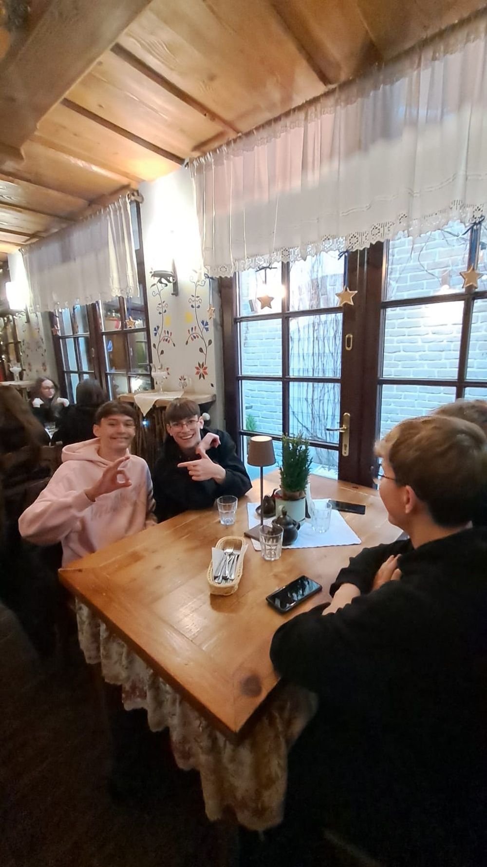 Po solidnej dawce historii przyszedł czas na smaczny obiad w regionalnej karczmie, który pozwolił młodzieży naładować siły, przed ostatnim punktem programu. Krakowski Jarmark Bożonarodzeniowy zachwycił niepowtarzalną atmosferą. Migoczące światła, zapach świątecznych przysmaków sprawiły, że wszyscy mogli poczuć magię zbliżających się świąt i zabrać ze sobą odrobinę grodu Kraka w postaci pamiątek oraz niezapomnianych wspomnień.