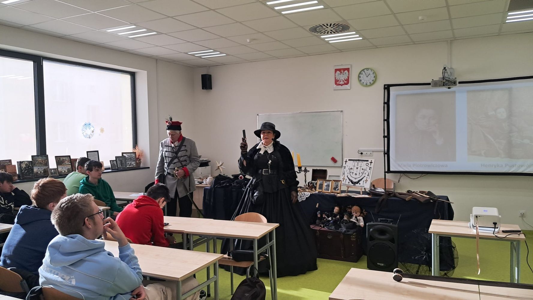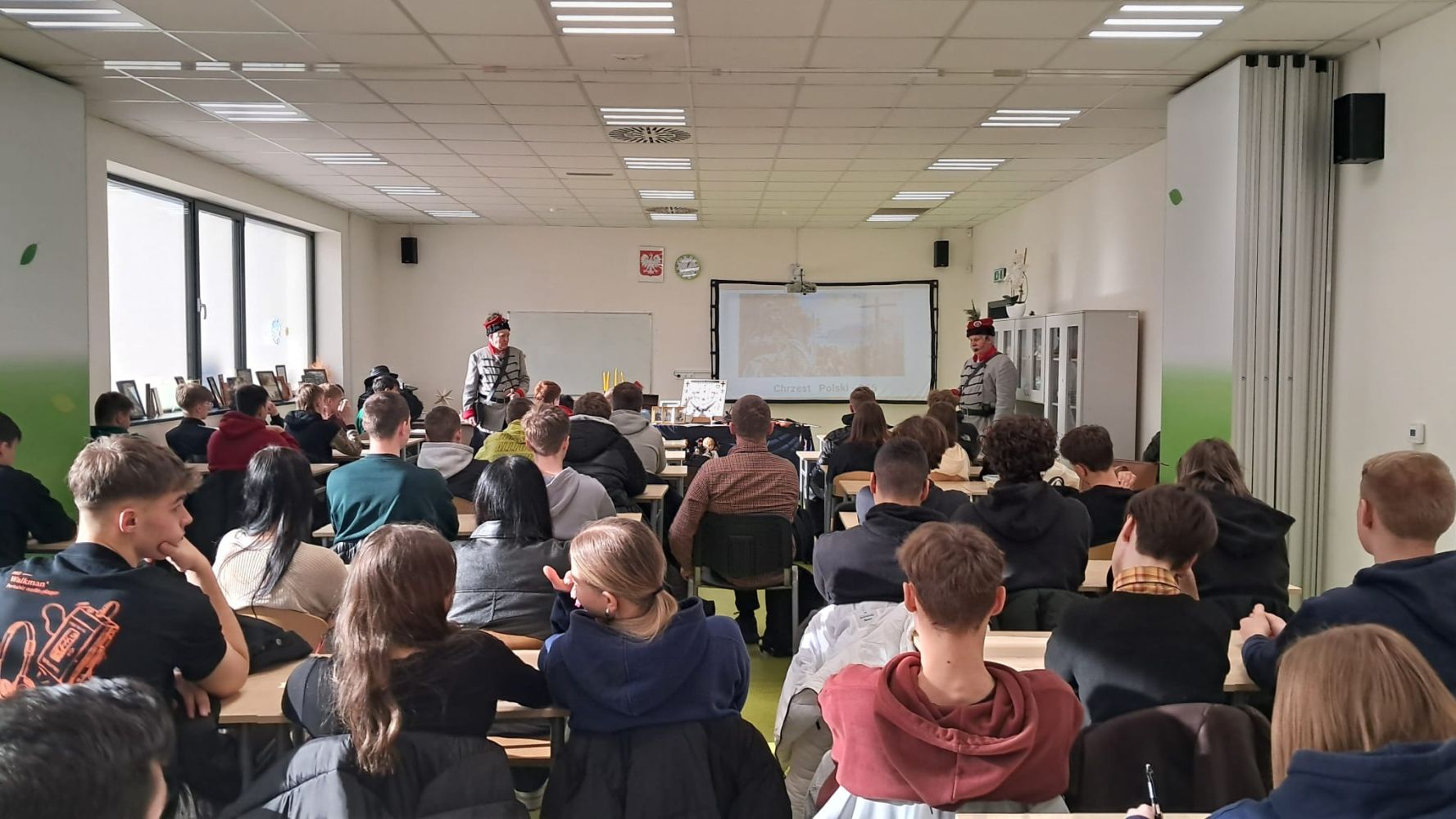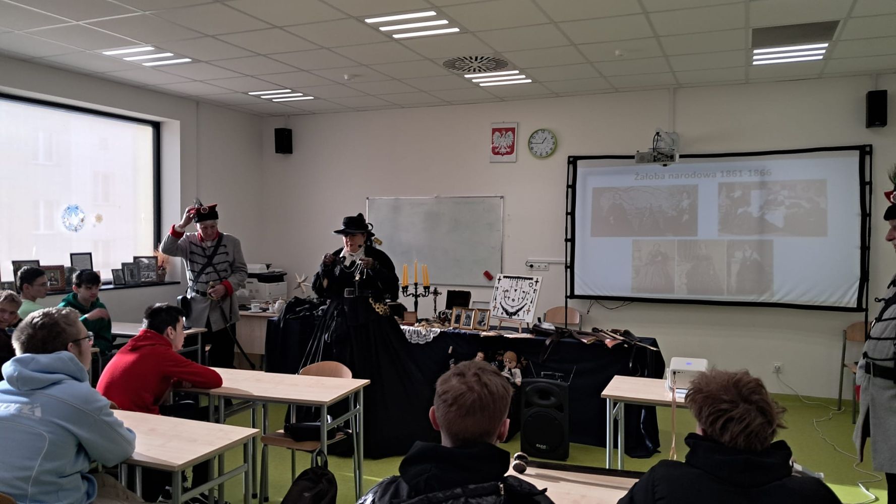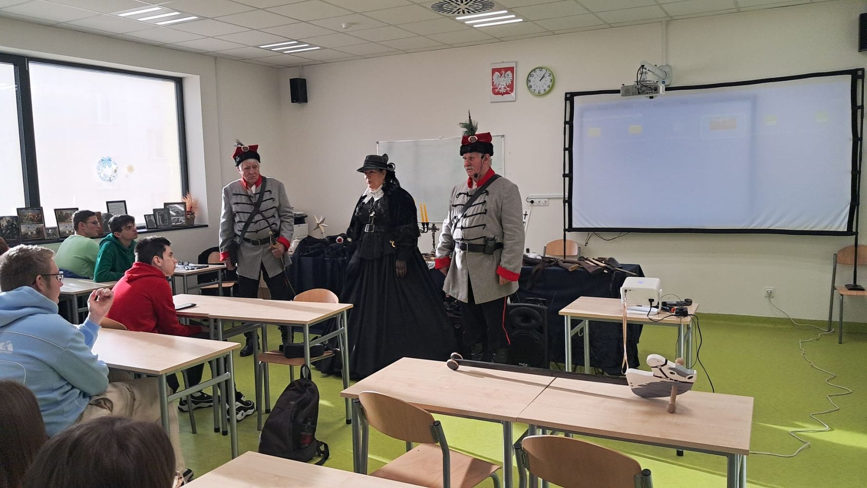 Gośćmi szkoły byli przedstawiciele Stowarzyszenia Historycznego im. Ks. mjr Szczepana Walkowskiego: pani Anna Świegot, pan Eugeniusz Tomaszek oraz pan Jerzy Przybył. W wydarzeniu udział wzięli uczniowie klas: 3Te,3Ti1, 4Ti1, 3Tb i 1S. Prelekcja pt. „O Powstaniu Styczniowym inaczej” wprowadziła młodzież w tematykę Powstania, przybliżając jego przebieg oraz sylwetki dyktatorów powstania: Mariana Langiewicza, Romualda Traugutta i Ludwika Mierosławskiego.