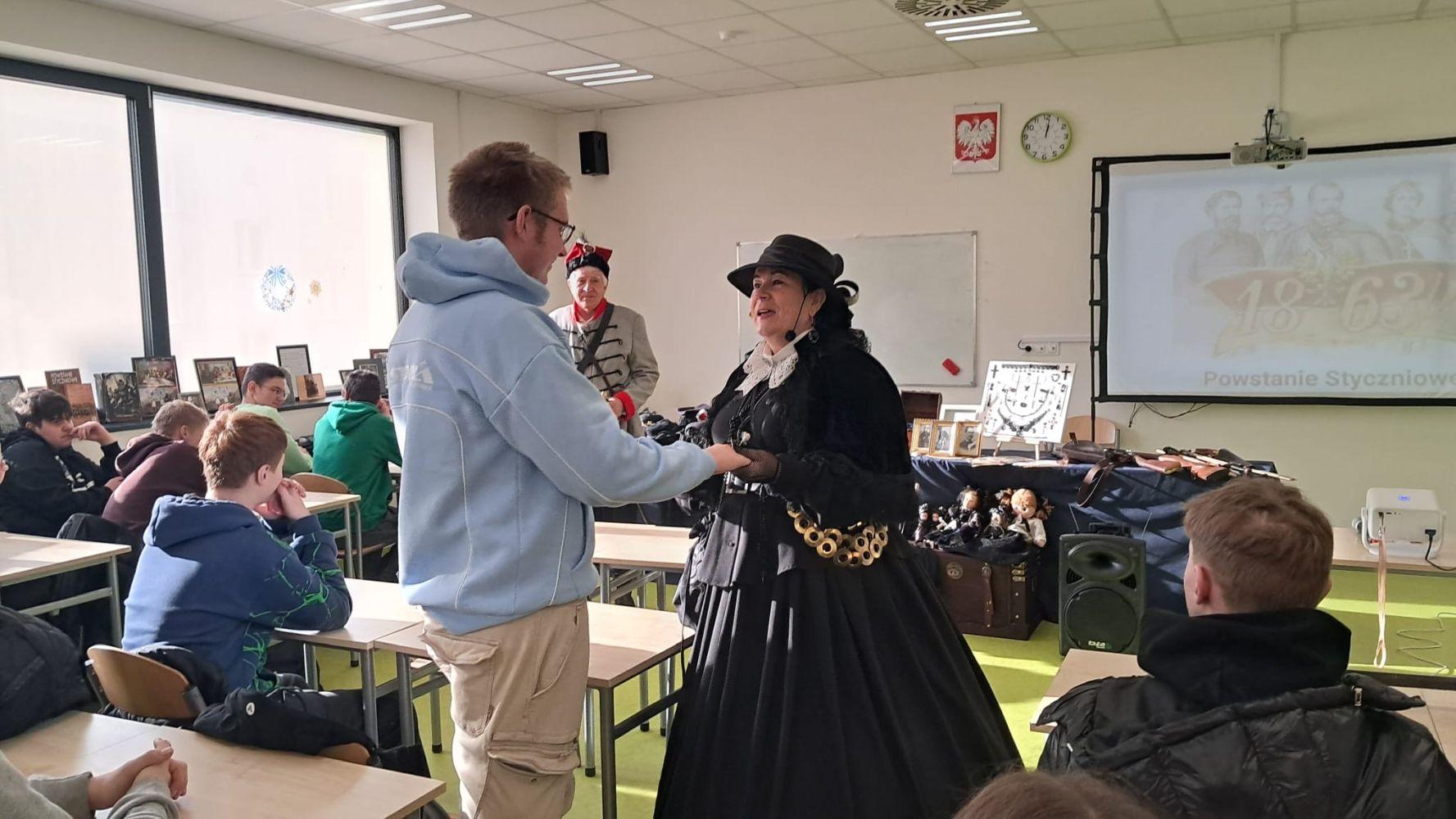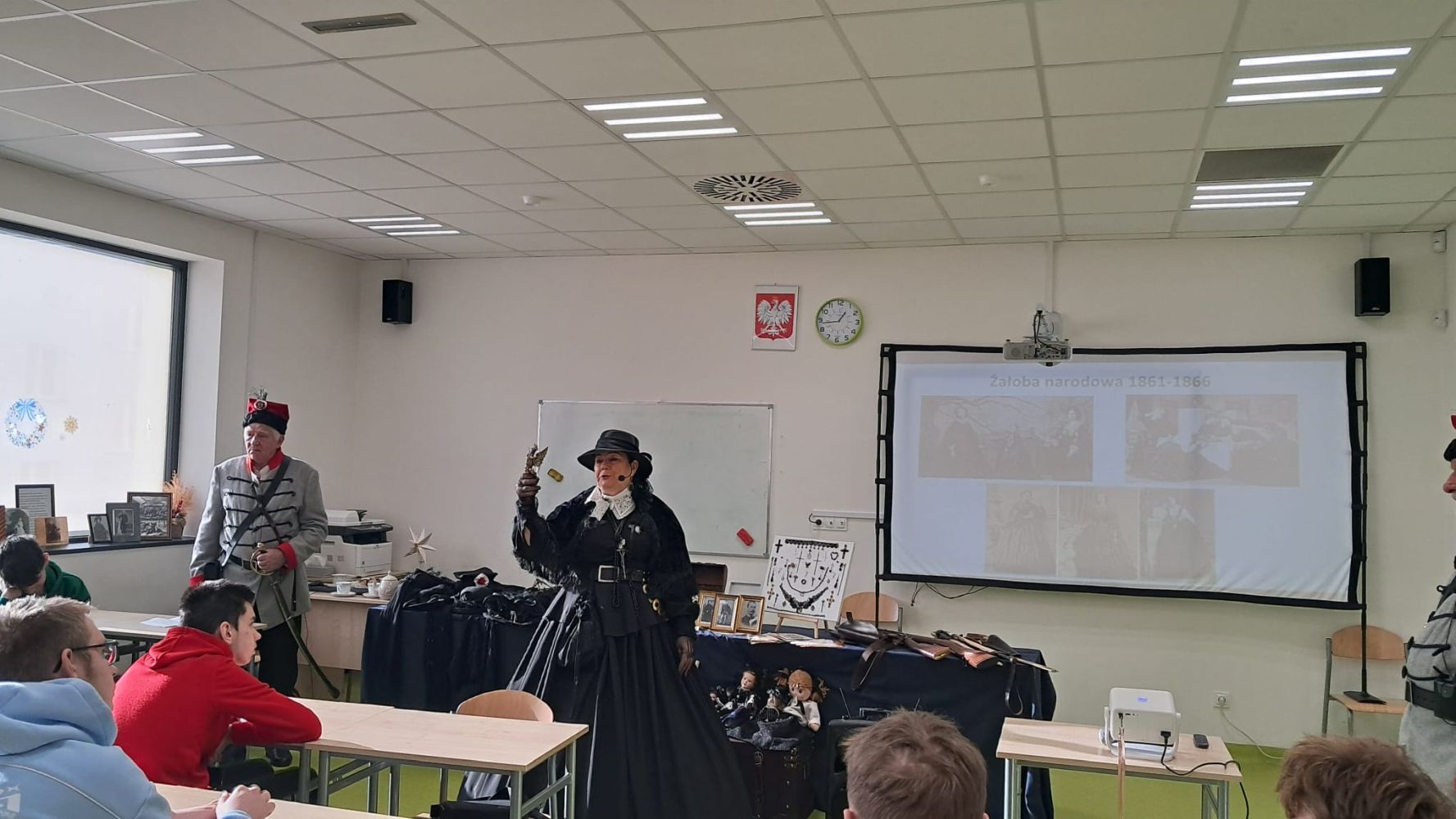 22 stycznia 2026 roku, w 163. rocznicę wybuchu Powstania Styczniowego, w Zespole Szkół Ponadpodstawowych im. Stanisława Staszica w Wieruszowie odbyło się wyjątkowe spotkanie historyczne. Uczniowie naszej szkoły uczestniczyli w prelekcji poświęconej jednemu z najważniejszych powstań narodowych okresu zaborów, która w niecodzienny sposób przybliżyła realia XIX-wiecznej walki o niepodległość.