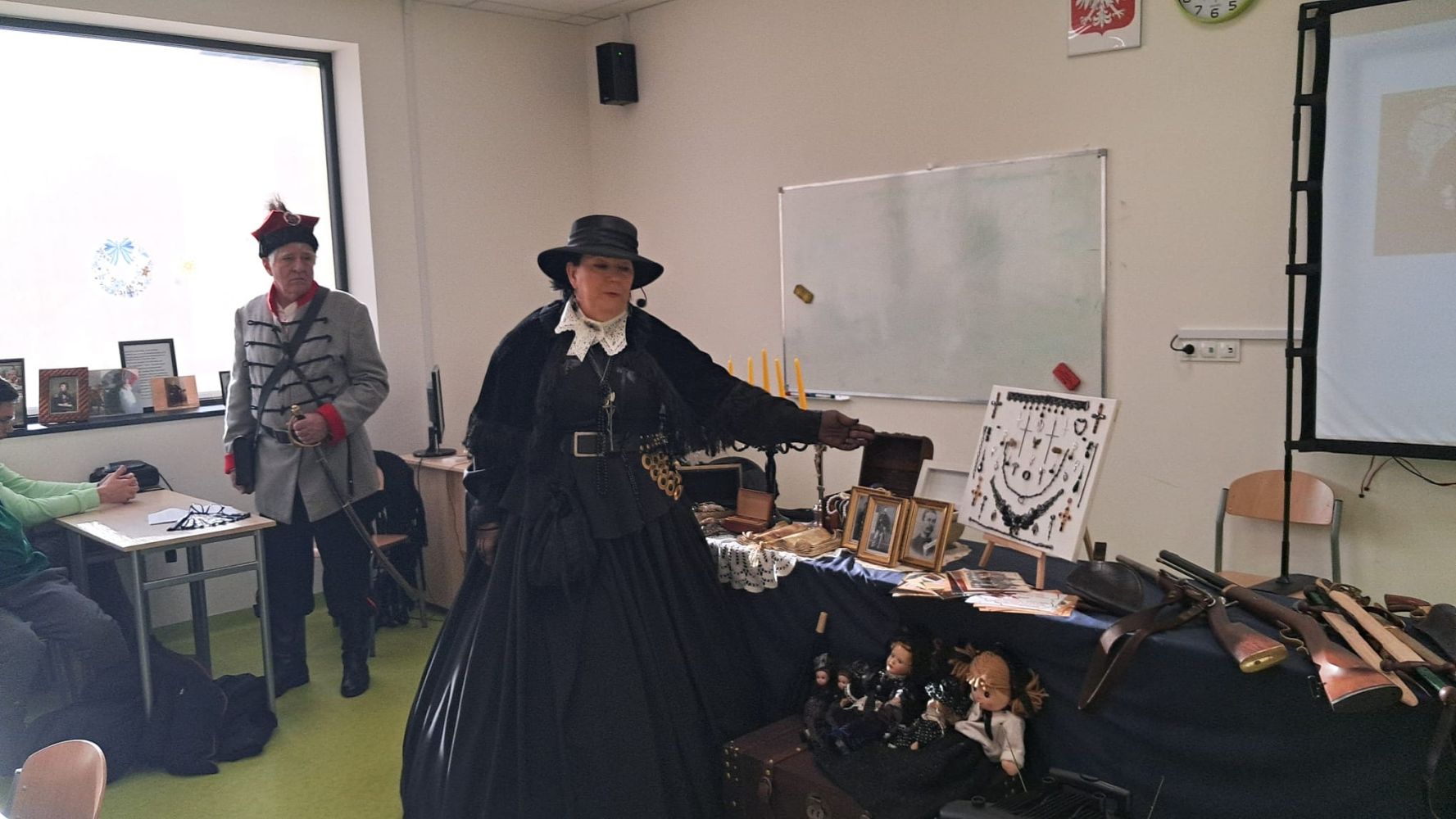 Istotnym elementem spotkania było ukazanie roli kobiet w Powstaniu Styczniowym. Zaprezentowana biżuteria patriotyczna miała charakter symboliczny – krzyże i łańcuchy nasuwały skojarzenia z cierpieniem narodu polskiego pod zaborami i stanowiły wyraz żałoby oraz oporu. Przypomniano sylwetki Marii Piotrowiczowej i Henryki Pustowójtówny, a także nawiązano do twórczości przedstawicieli pozytywizmu. Uczennice mogły przymierzyć historyczne kapelusze, co pozwoliło im lepiej wyobrazić sobie realia życia kobiet w XIX wieku. Spotkanie zakończyło się wspólnym wysłuchaniem „Pieśni konfederatów barskich”, podkreślającym patriotyczny charakter wydarzenia.