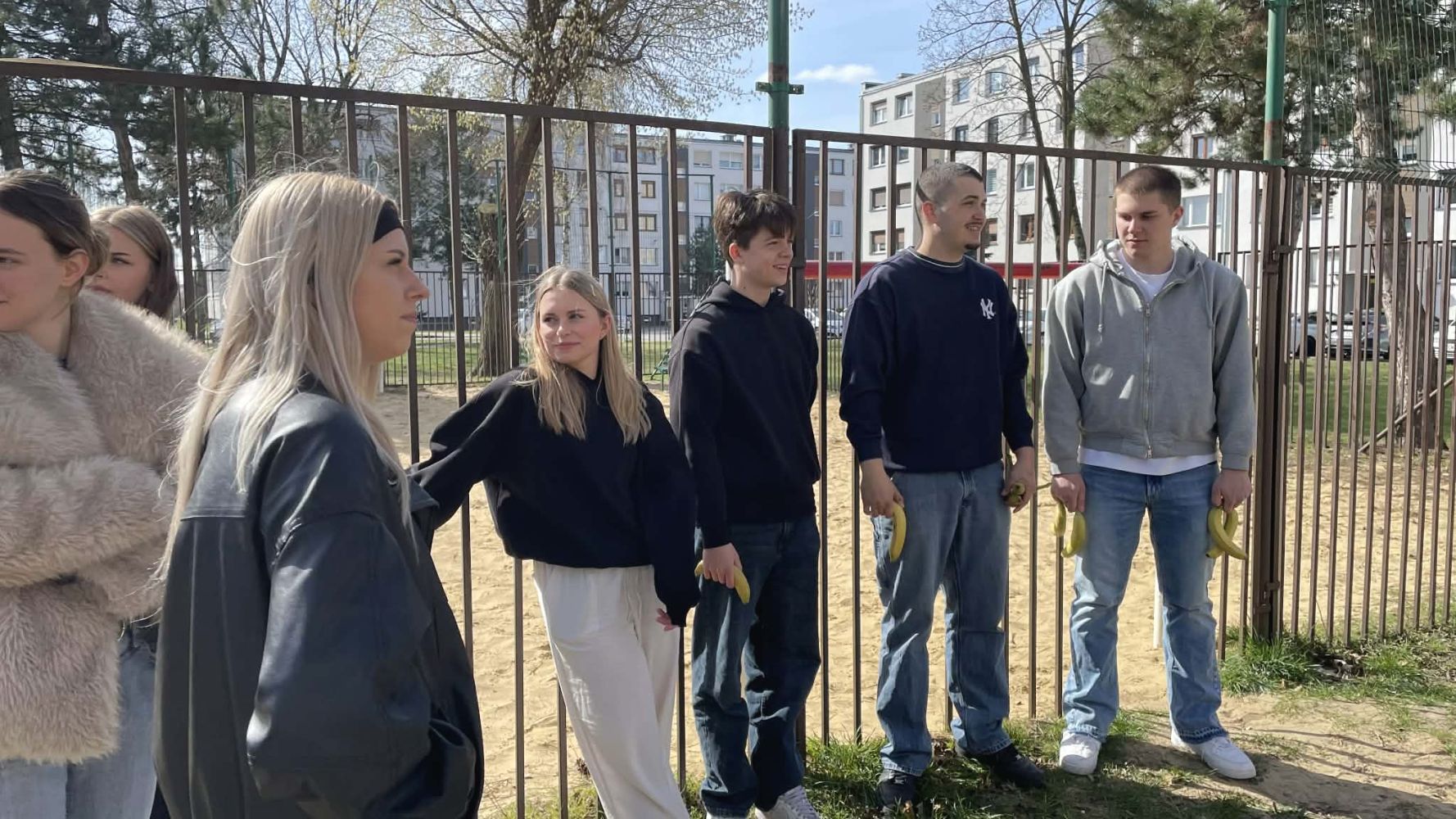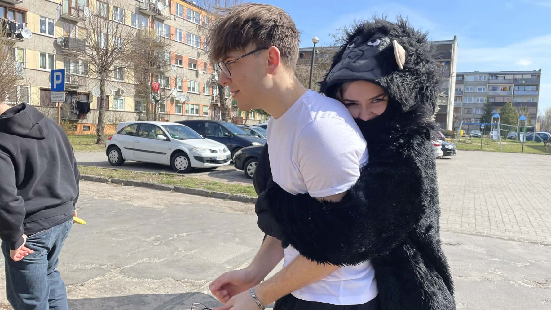 Tegoroczne obchody prima aprilis w naszej szkole przebiegły w wyjątkowo radosnej atmosferze. W zabawę aktywnie włączyła się klasa 4 TL2, która przygotowała krótką, humorystyczną akcję dla społeczności szkolnej i lokalnej. Największą atrakcją okazał się… goryl! Jedna z uczennic przebrała się w pełny strój goryla i wraz z koleżankami oraz kolegami z klasy pojawiła się na boisku osiedlowym, gdzie przygotowano krótkie, spontaniczne scenki teatralne. Występy miały charakter komediowy i szybko przyciągnęły uwagę zarówno uczniów, jak i mieszkańców okolicy.