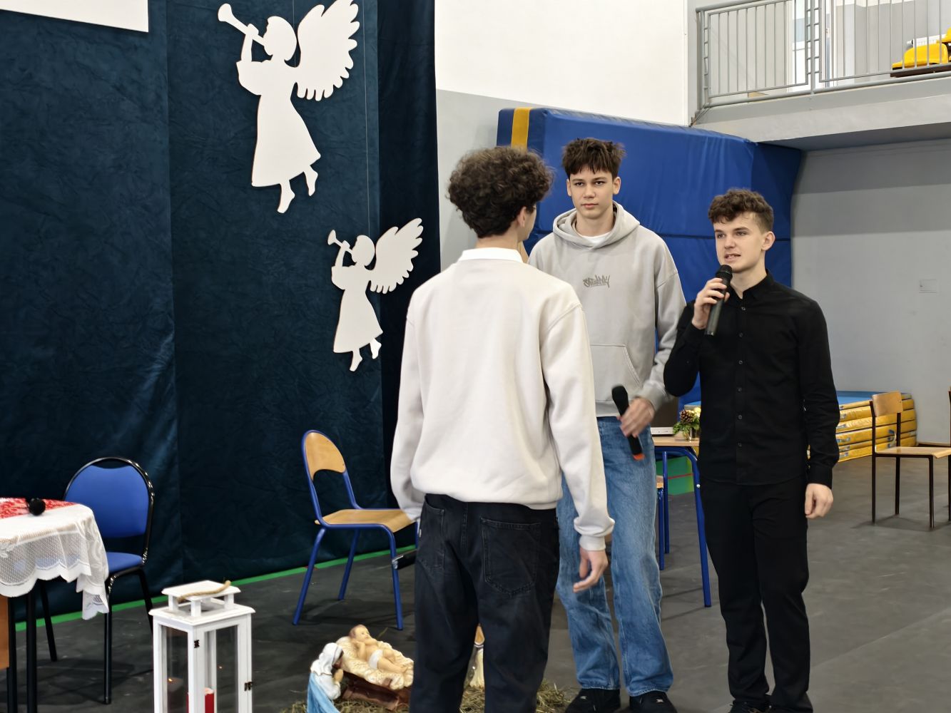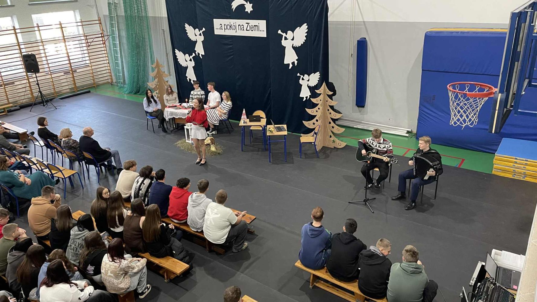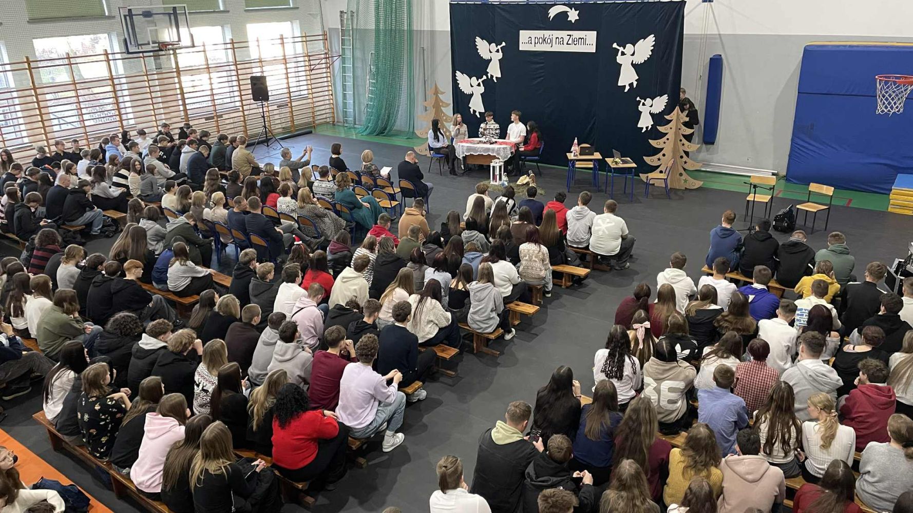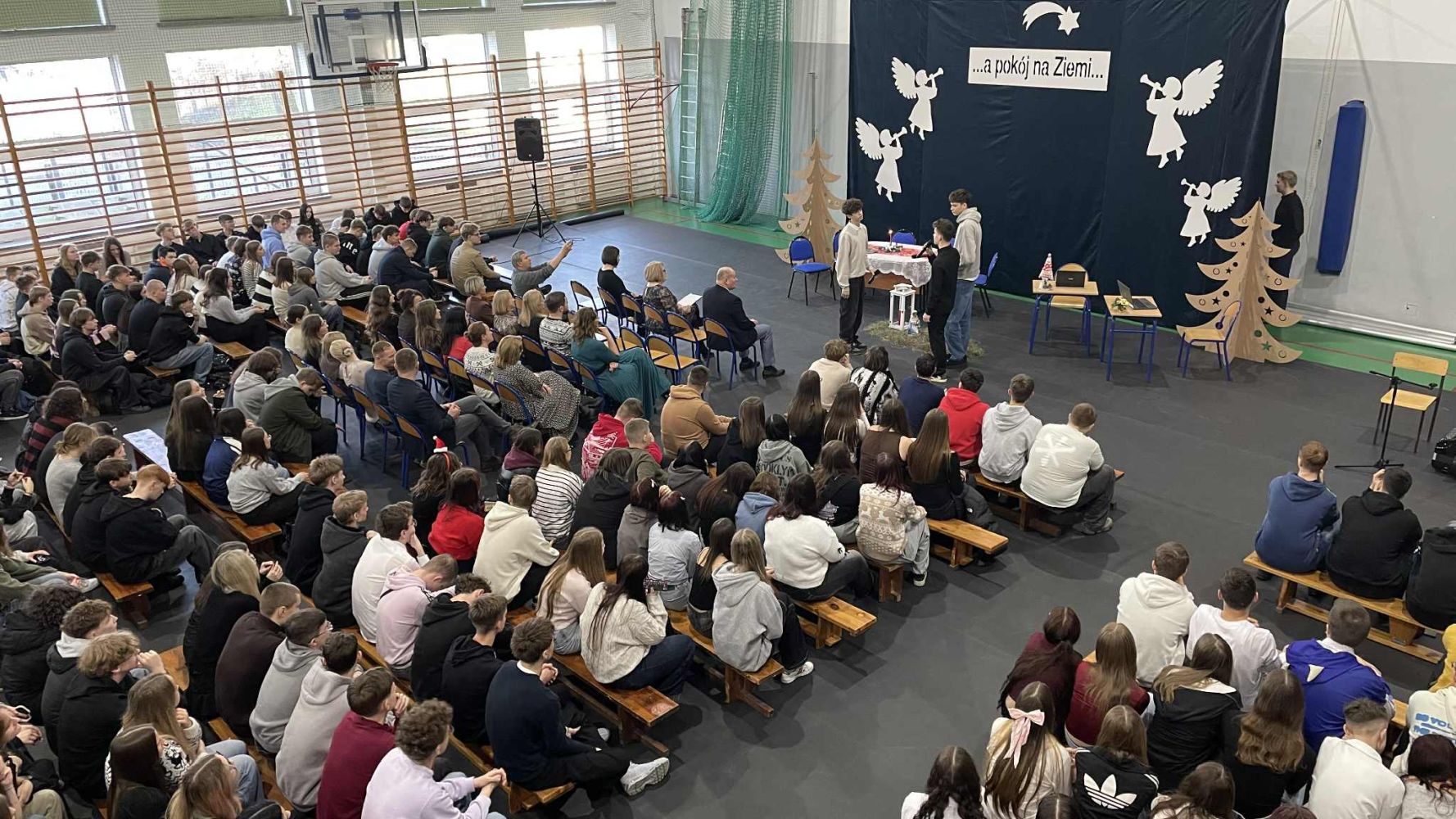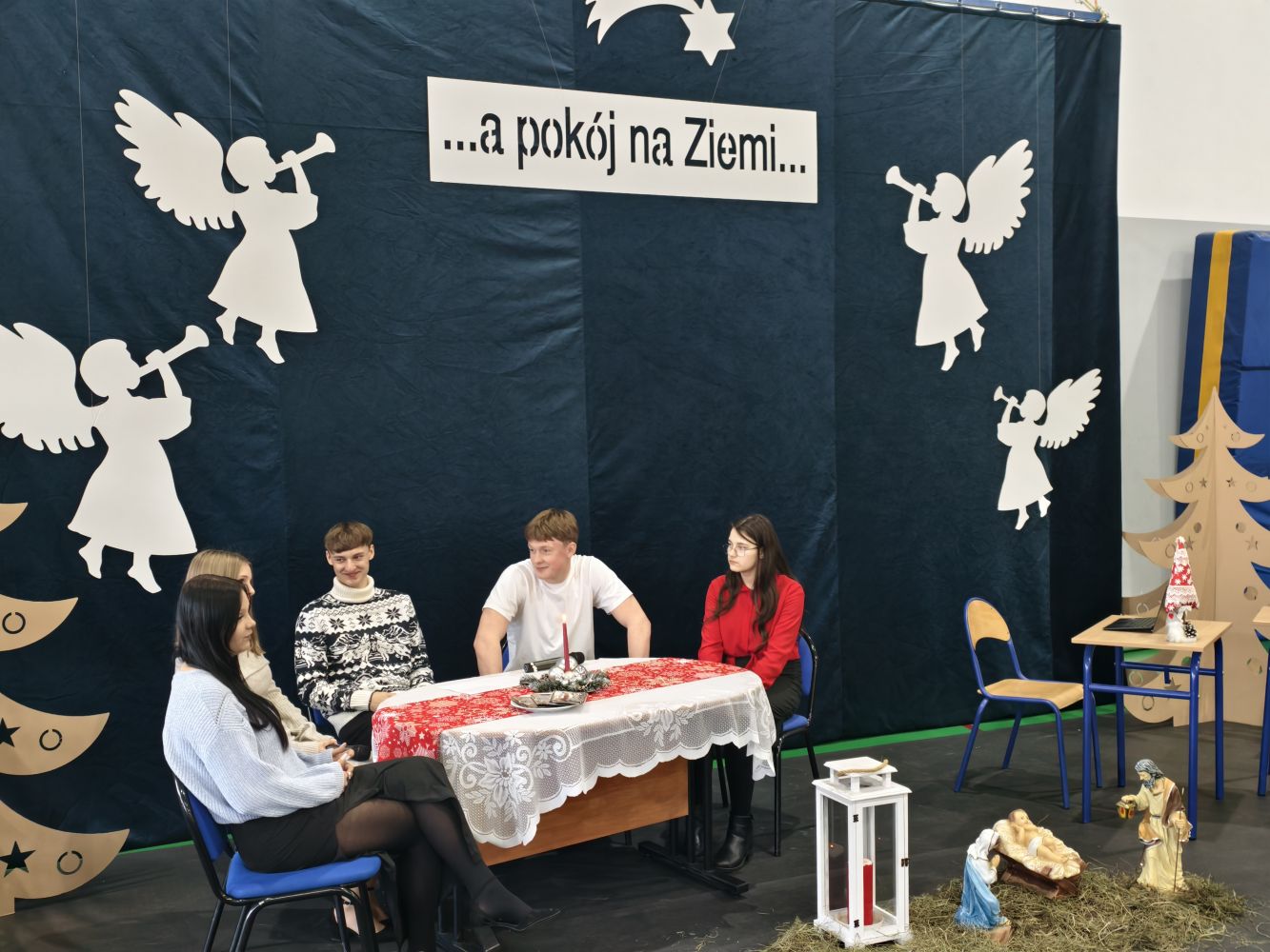 W piątek 19 grudnia w naszej szkole zorganizowane zostały jasełka. Przedstawienie odbiegało od standardowego obrazu tego wydarzenia. Nie było pasterzy, zwierząt, aniołów i świętej rodziny. Uczniowie przedstawiali scenki z codziennego życia ludzi w przedświąteczne dni i wieczór wigilijny. Całość podsumowana została przypomnieniem co w tym czasie jest najważniejsze – budowanie relacji i pozytywnych wspomnień.