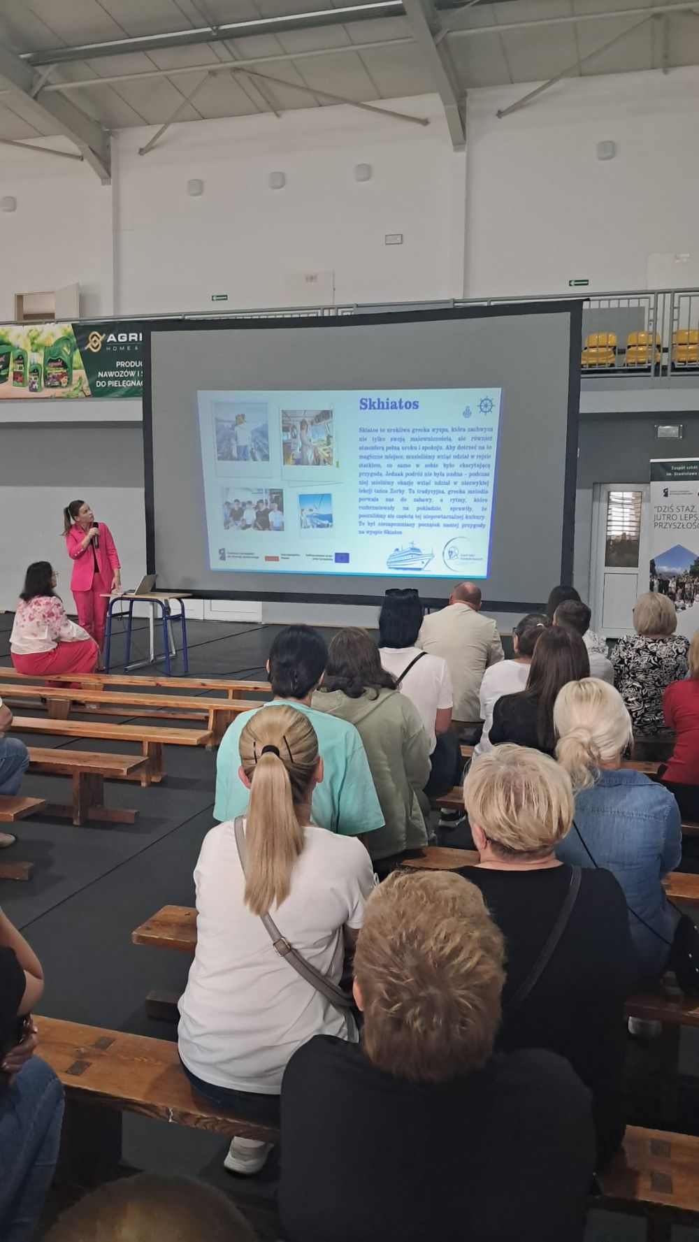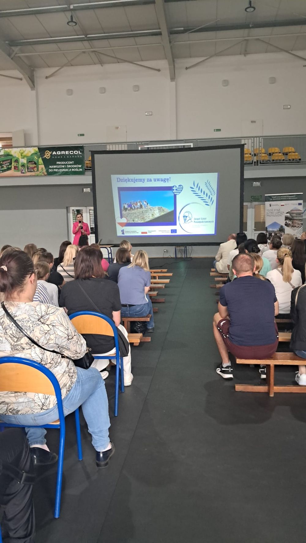 W dniu 8 września 2025 roku na sali gimnastycznej Zespołu Szkół Ponadpodstawowych im. Stanisława Staszica w Wieruszowie odbyło się spotkanie dyrekcji szkoły, koordynatora projektu oraz rodziców uczniów ze wszystkich klas. Wydarzenie było częścią działań promujących projekt „Staż zagraniczny fundamentem przyszłych sukcesów”, realizowany dzięki wsparciu FERS i Unii Europejskiej.