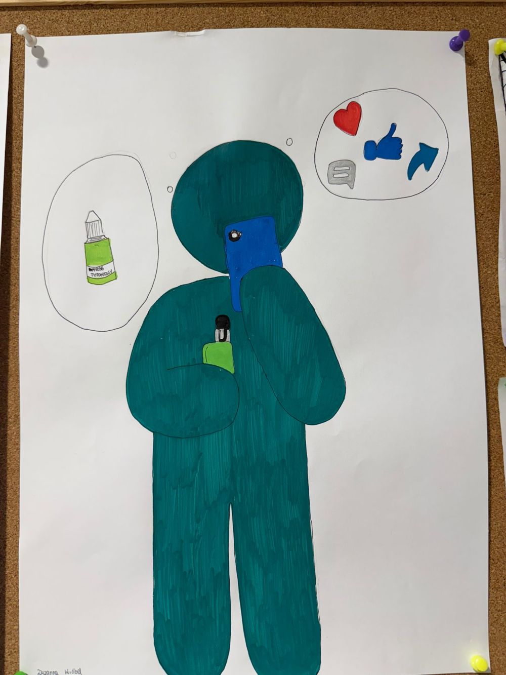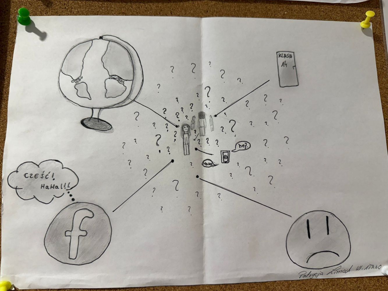 Wszystkie prace zostały umieszczone na tablicy korkowej w budynku pasywnym, przy gabinecie pedagoga, gdzie tworzą wyjątkową „Galerię refleksji – Usłysz mnie”. To miejsce, w którym każdy może na chwilę się zatrzymać, spojrzeć i pomyśleć – o sobie, o innych, o tym, co naprawdę liczy się w życiu.