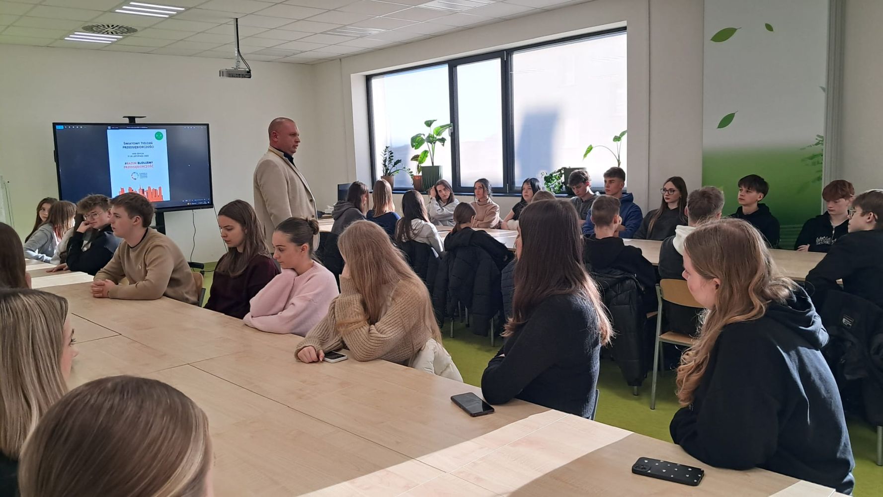 19 listopada 2025 r. w Zespole Szkół Ponadpodstawowych im. Stanisława Staszica w Wieruszowie odbyło się wydarzenie związane z obchodami Światowego Tygodnia Przedsiębiorczości. W inicjatywie uczestniczyli uczniowie klas: 4Te1, 4Tl1, 4Tlh oraz 4i1, którzy mieli okazję poszerzyć swoją wiedzę na temat współczesnych trendów w biznesie i perspektyw rozwoju zawodowego.