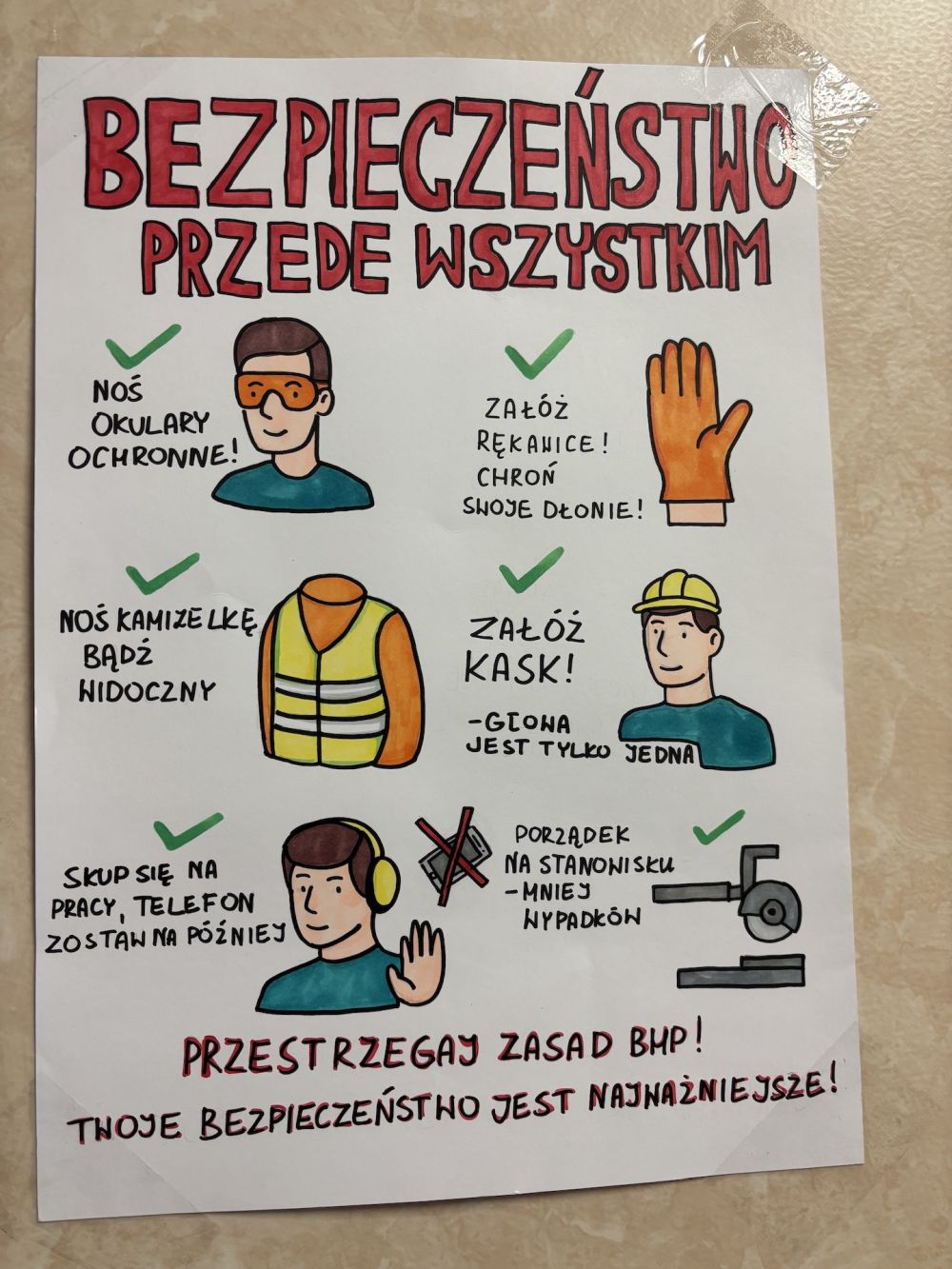 W dniach 29 września – 3 października 2025 roku w naszej szkole szczególną uwagę poświęciliśmy tematyce bezpieczeństwa i higieny pracy. Tydzień BHP to czas, w którym – na przełomie września i października – staramy się uświadomić uczniom, a tak naprawdę przyszłym pracownikom, jak istotne jest dbanie o bezpieczeństwo w miejscu pracy.