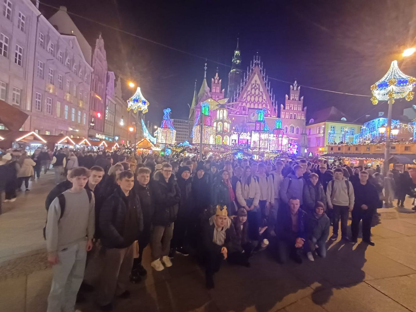 Na zakończenie uczniowie udali się na wrocławski jarmark bożonarodzeniowy, gdzie mogli poczuć świąteczną atmosferę miasta, spróbować regionalnych przysmaków oraz zakupić pamiątki. Był to czas integracji i odpoczynku po intensywnym dniu pełnym wrażeń.