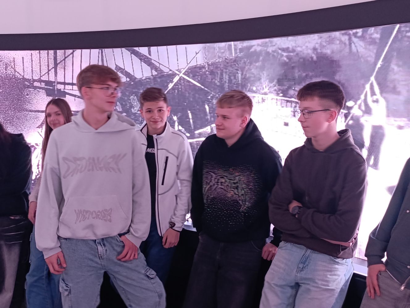 Pierwszym punktem programu była wizyta w kinie, gdzie uczniowie obejrzeli film „Norymberga”. Produkcja przedstawia międzynarodowy proces przywódców III Rzeszy, który odbył się po II wojnie światowej. Alianci – Stany Zjednoczone, ZSRR, Wielka Brytania i Francja – osądzają nazistowskich dygnitarzy oskarżonych o zbrodnie wojenne, zbrodnie przeciwko ludzkości oraz planowanie wojny agresywnej. Akcja filmu toczy się zarówno na sali sądowej, jak i podczas przesłuchań, ukazując postawy oskarżonych, ich linie obrony oraz psychologiczne portrety. Jedną z kluczowych postaci jest Hermann Göring, były marszałek Rzeszy i bliski współpracownik Adolfa Hitlera, który początkowo zachowuje się arogancko i próbuje dominować nad innymi oskarżonymi. Film ukazuje, jak z czasem jego pozycja słabnie, a ostatecznie zostaje on skazany na karę śmierci. Seans skłonił uczniów do refleksji nad odpowiedzialnością za zbrodnie wojenne i znaczeniem prawa międzynarodowego.