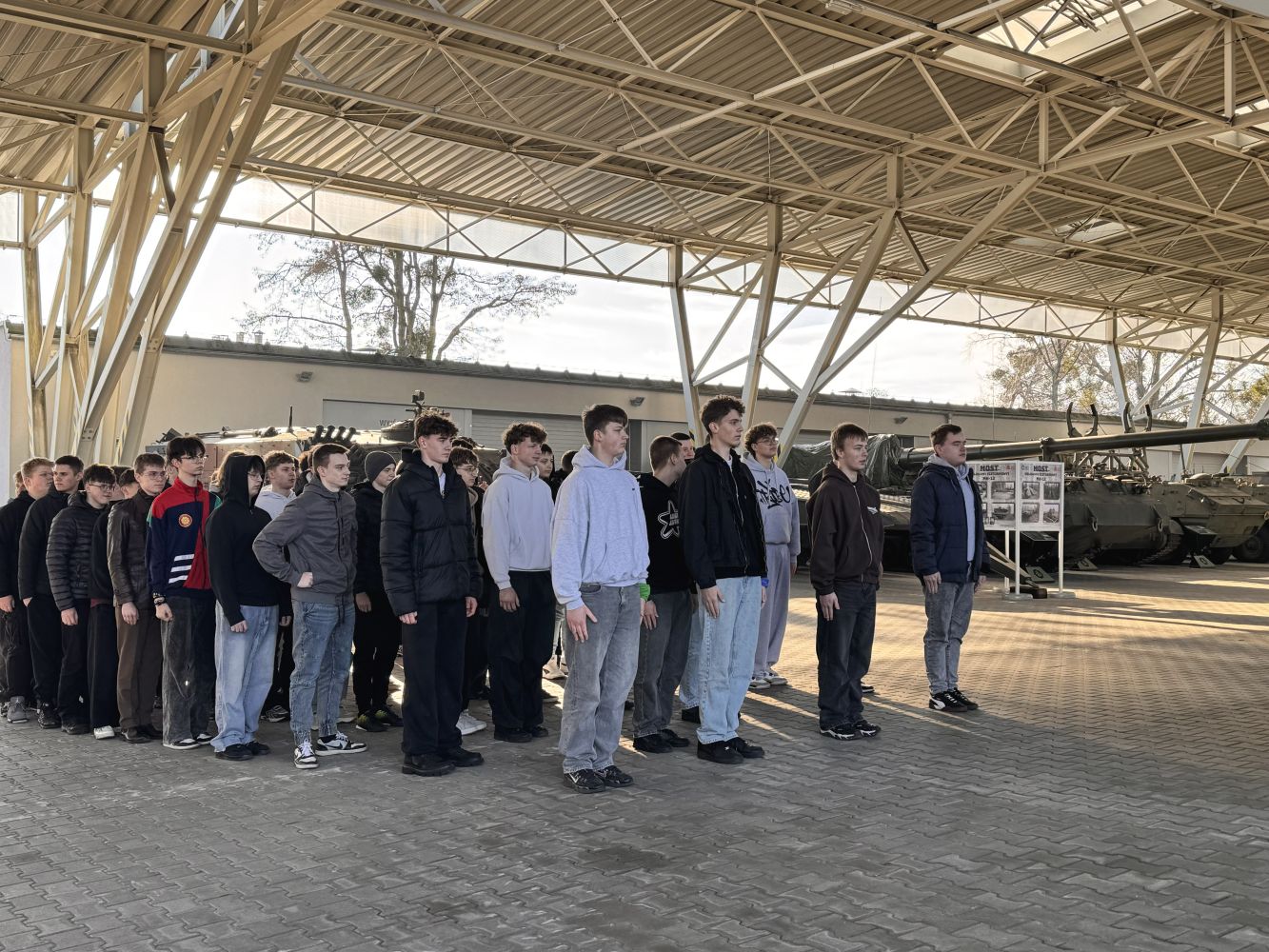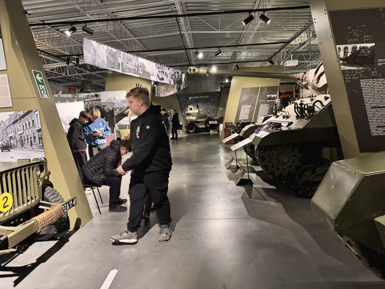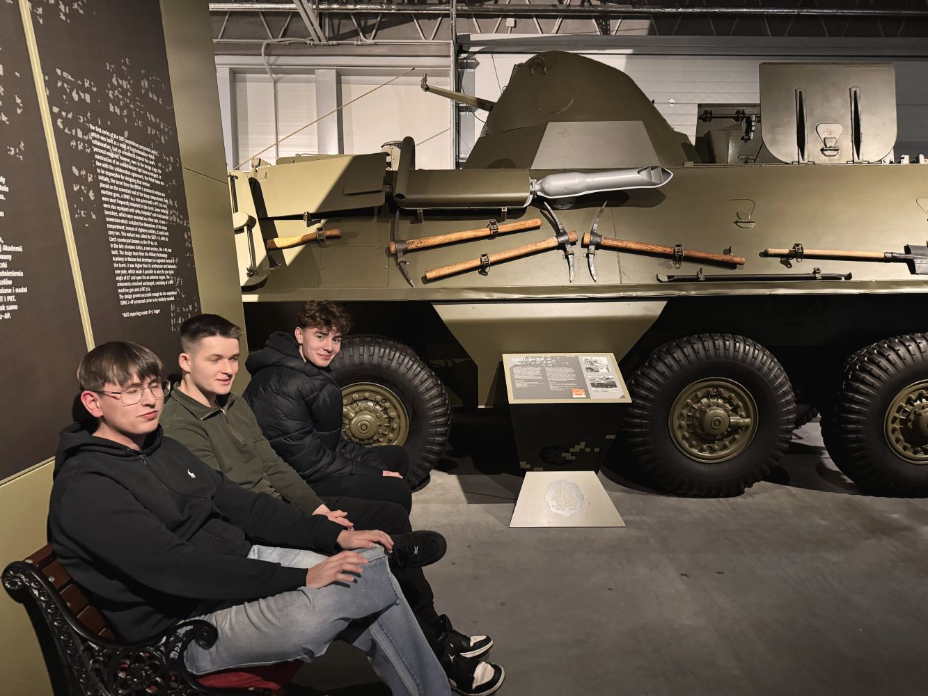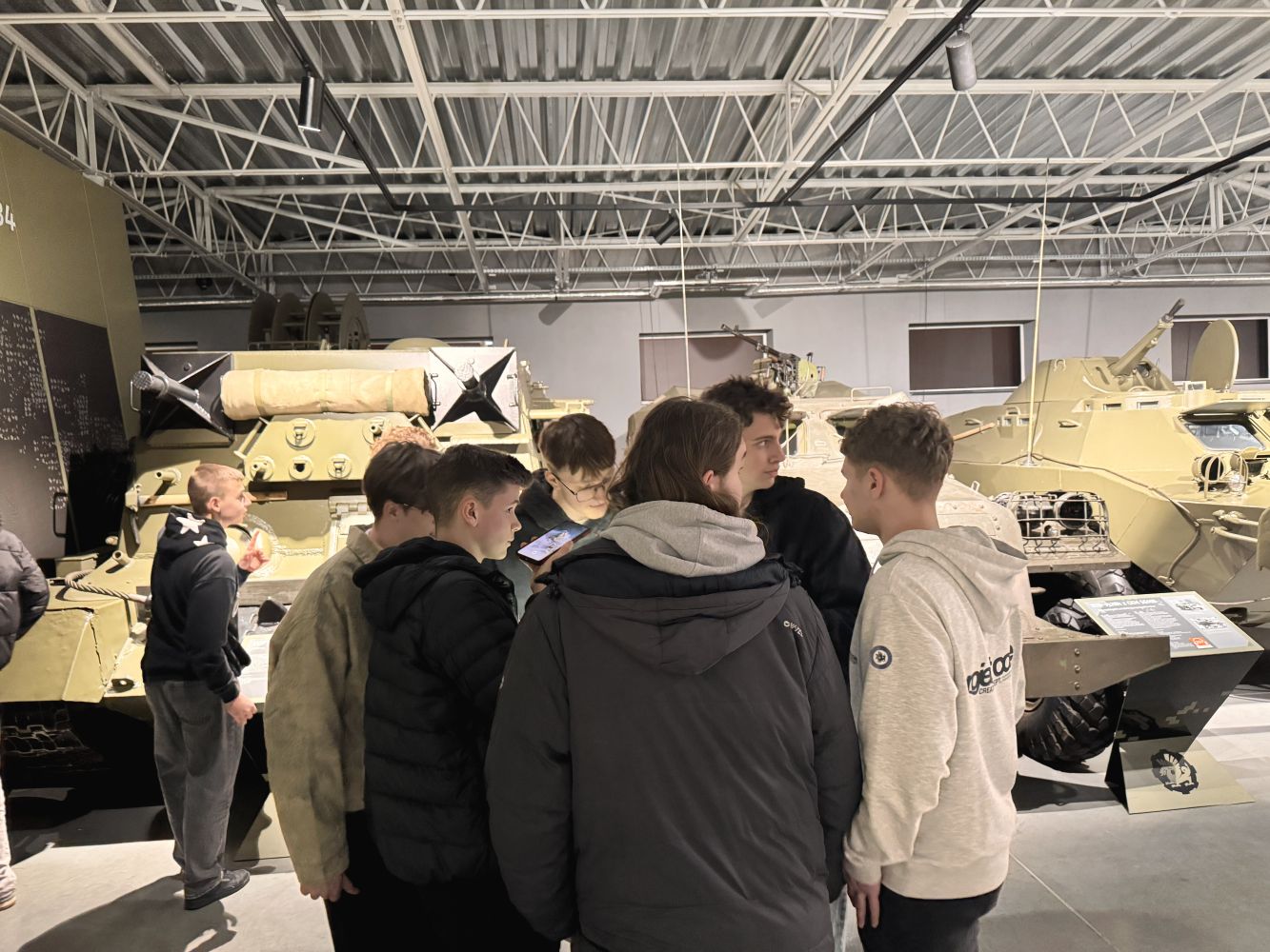 Muzeum prezentuje unikalną kolekcję czołgów, transporterów opancerzonych, dział samobieżnych oraz innej techniki wojskowej – od czasów I wojny światowej po współczesność. Wśród eksponatów znajdują się m.in. T-34-85 „Rudy” (znany z serialu Czterej pancerni i pies), a także legendarne czołgi M4 Sherman, Panther oraz IS-2. Możliwość zobaczenia tych maszyn z bliska pozwoliła uczniom lepiej zrozumieć rozwój technologii wojskowej oraz konstrukcyjne rozwiązania stosowane w różnych okresach historycznych.