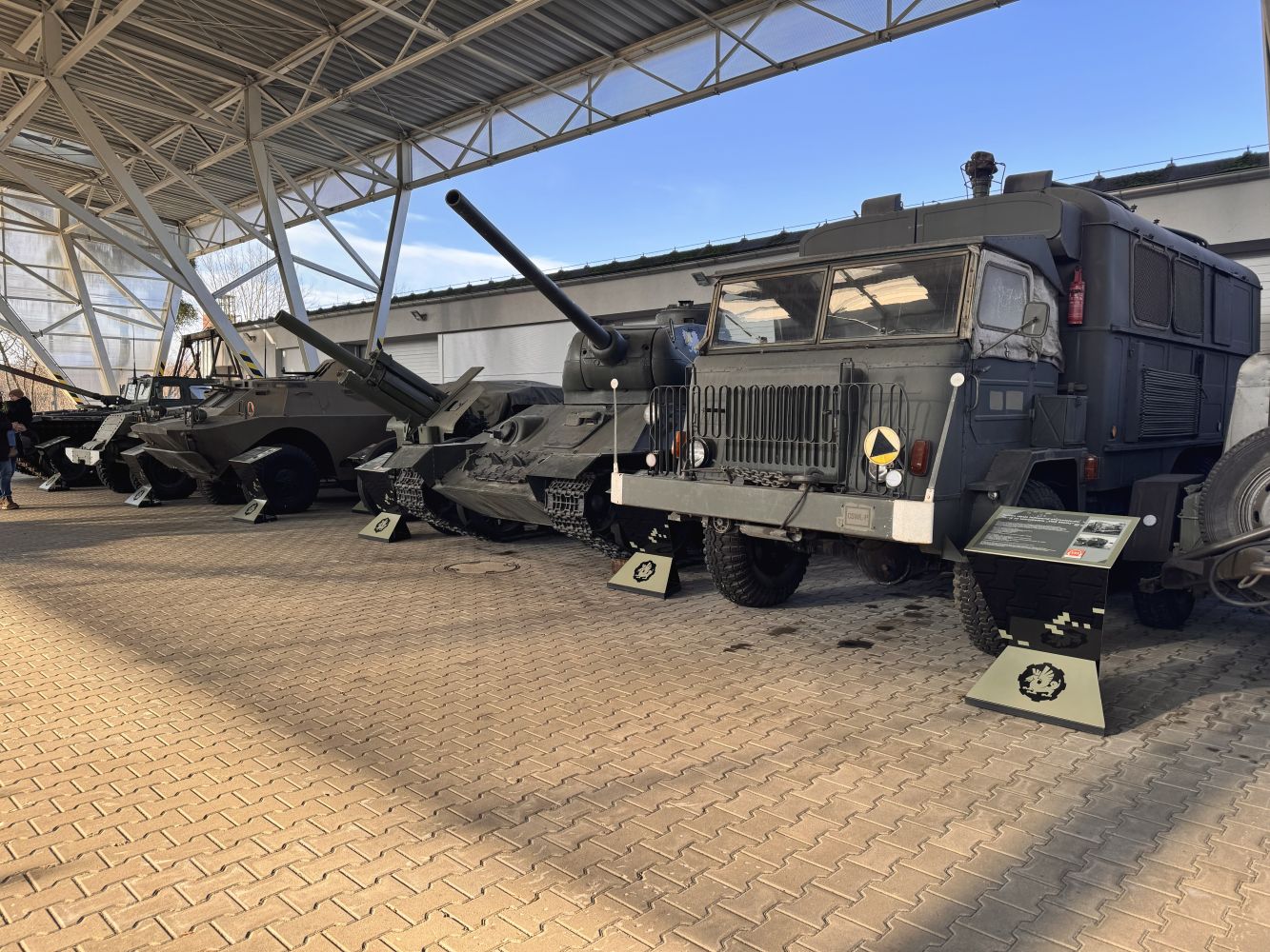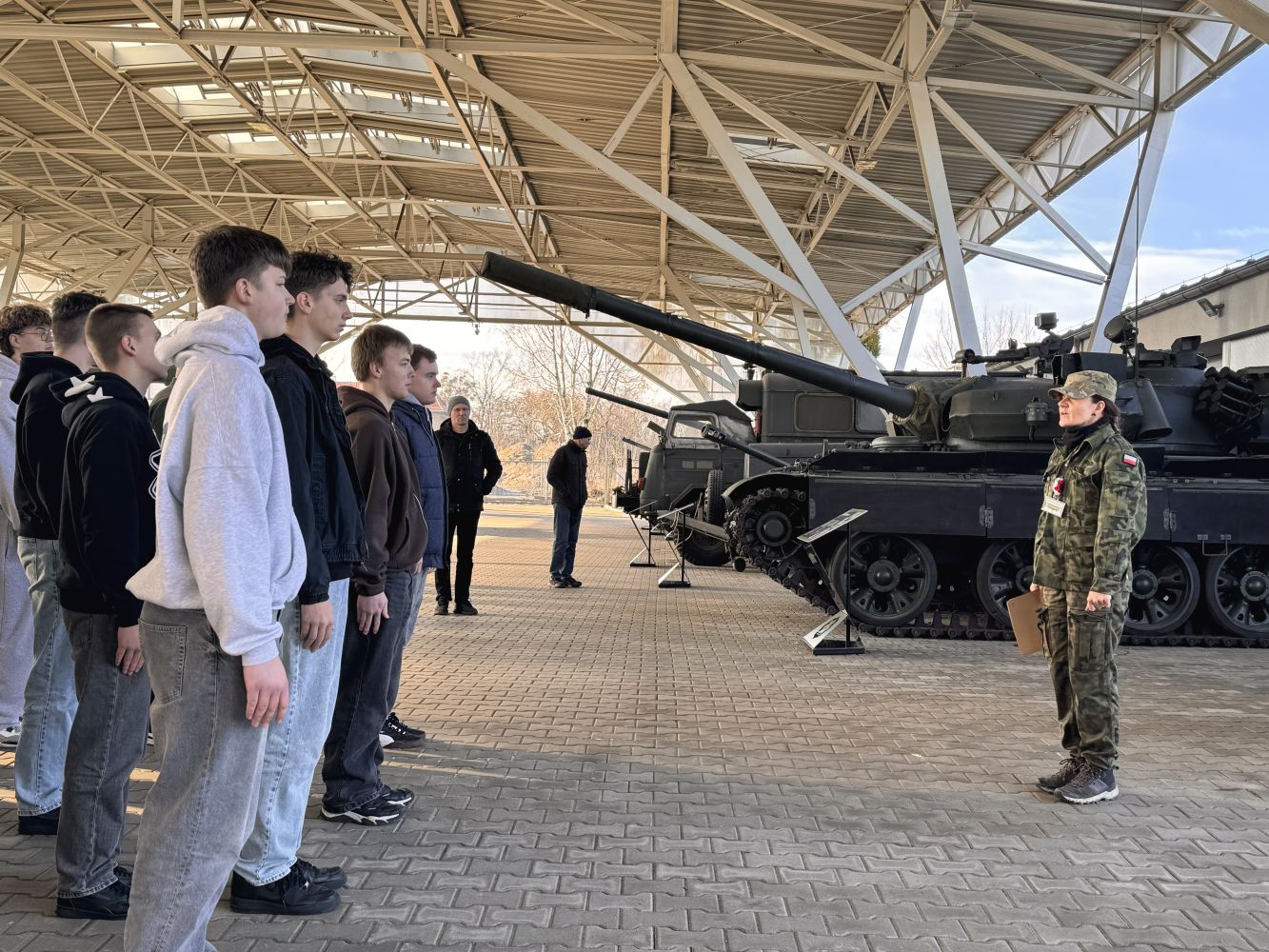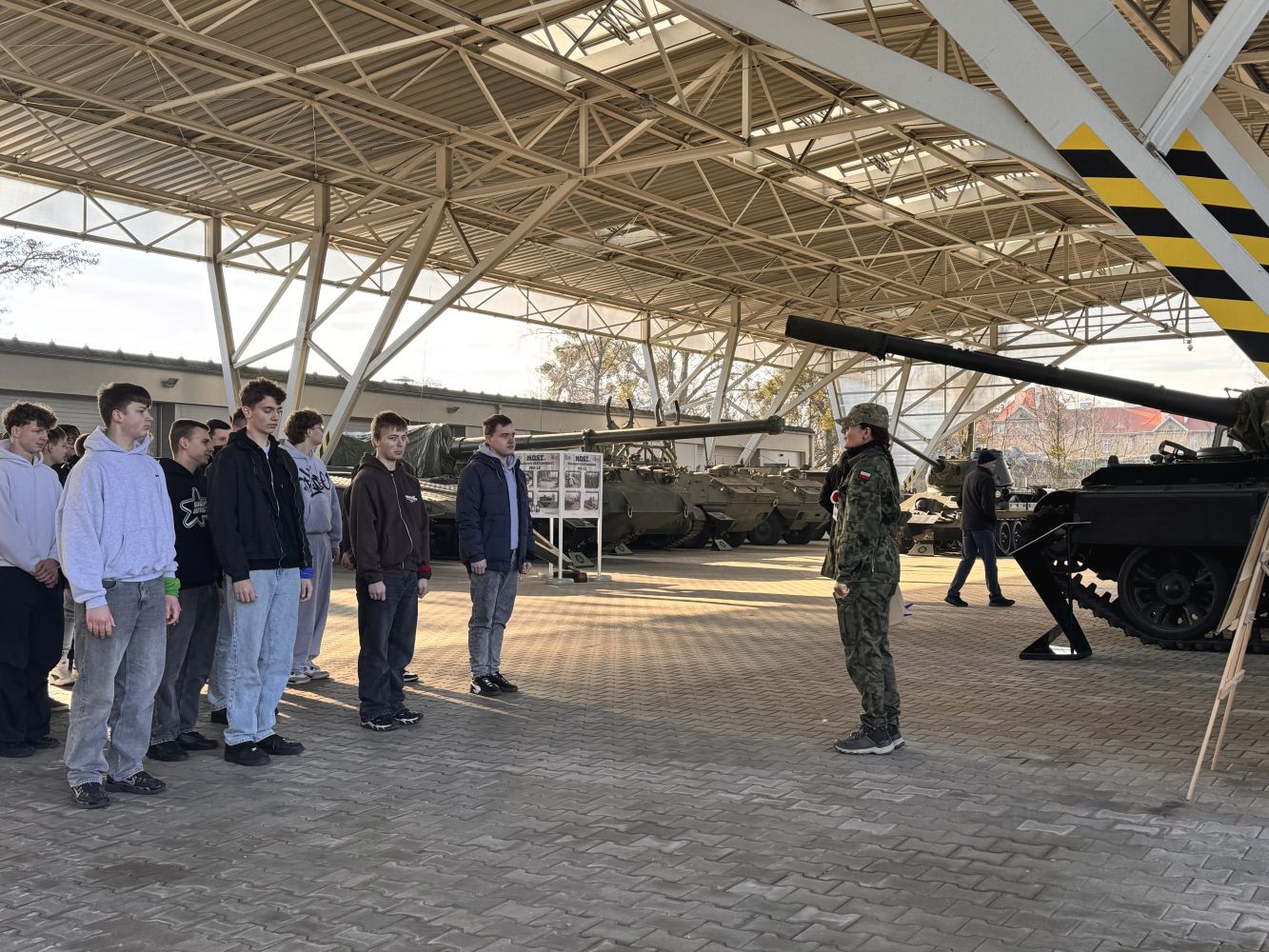 Muzeum prezentuje unikalną kolekcję czołgów, transporterów opancerzonych, dział samobieżnych oraz innej techniki wojskowej – od czasów I wojny światowej po współczesność. Wśród eksponatów znajdują się m.in. T-34-85 „Rudy” (znany z serialu Czterej pancerni i pies), a także legendarne czołgi M4 Sherman, Panther oraz IS-2. Możliwość zobaczenia tych maszyn z bliska pozwoliła uczniom lepiej zrozumieć rozwój technologii wojskowej oraz konstrukcyjne rozwiązania stosowane w różnych okresach historycznych.