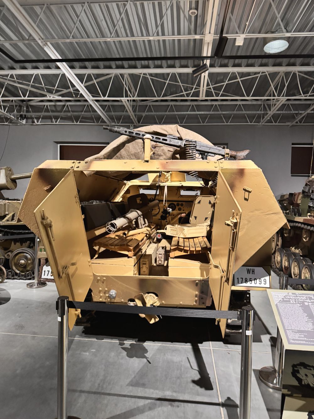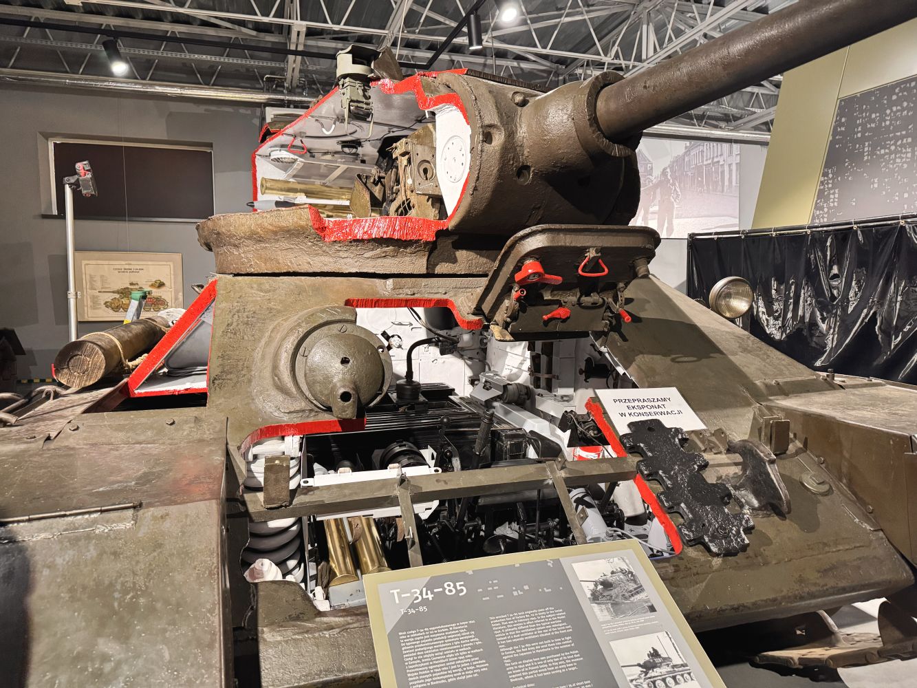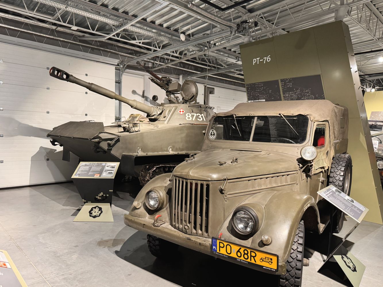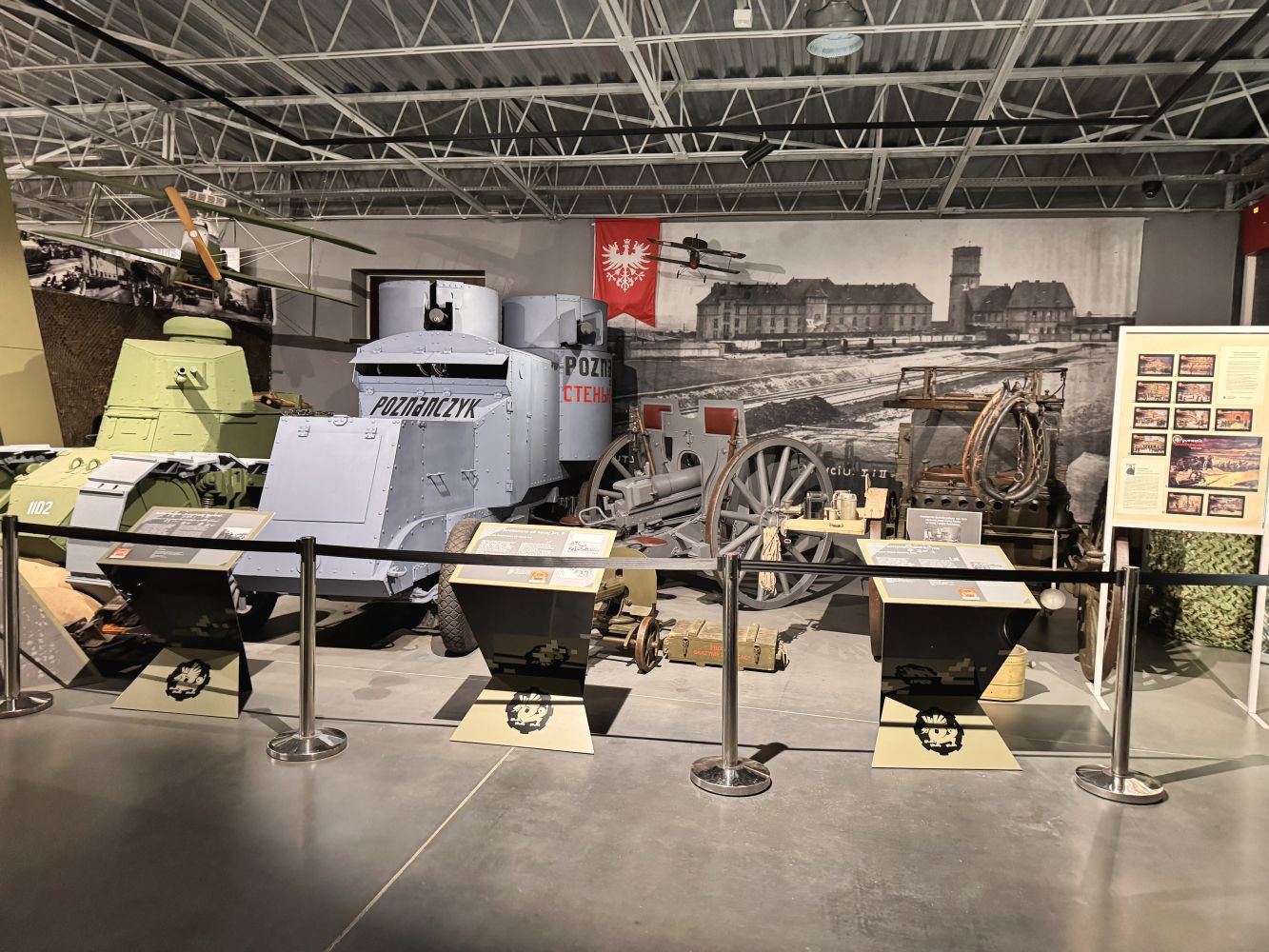 Muzeum prezentuje unikalną kolekcję czołgów, transporterów opancerzonych, dział samobieżnych oraz innej techniki wojskowej – od czasów I wojny światowej po współczesność. Wśród eksponatów znajdują się m.in. T-34-85 „Rudy” (znany z serialu Czterej pancerni i pies), a także legendarne czołgi M4 Sherman, Panther oraz IS-2. Możliwość zobaczenia tych maszyn z bliska pozwoliła uczniom lepiej zrozumieć rozwój technologii wojskowej oraz konstrukcyjne rozwiązania stosowane w różnych okresach historycznych.