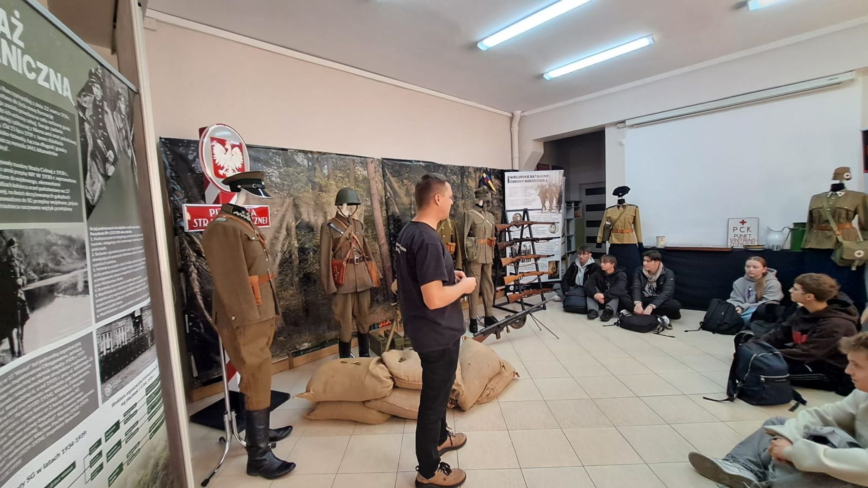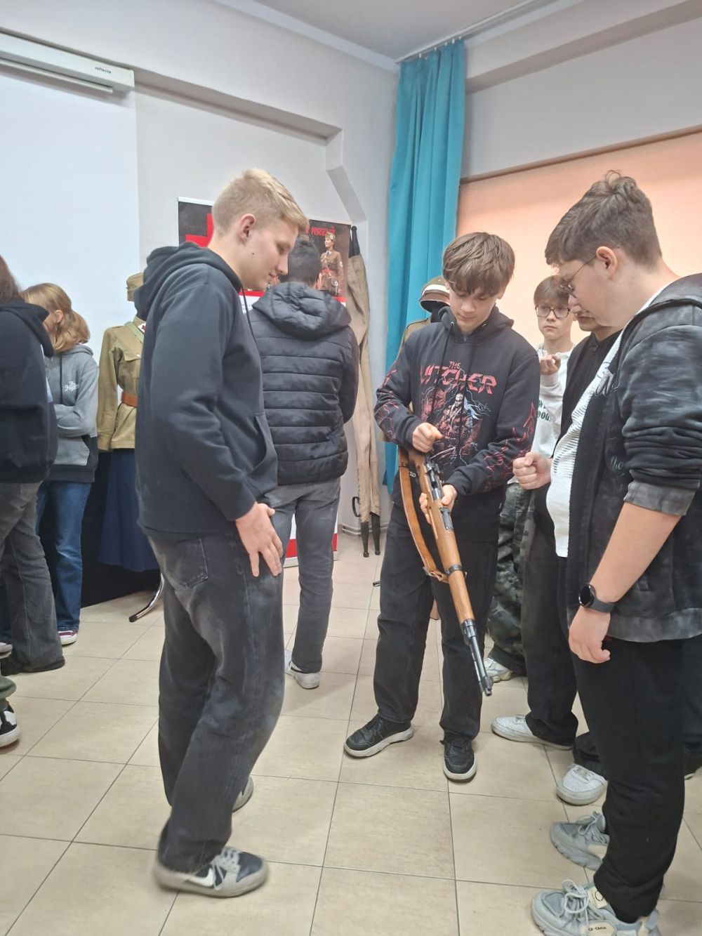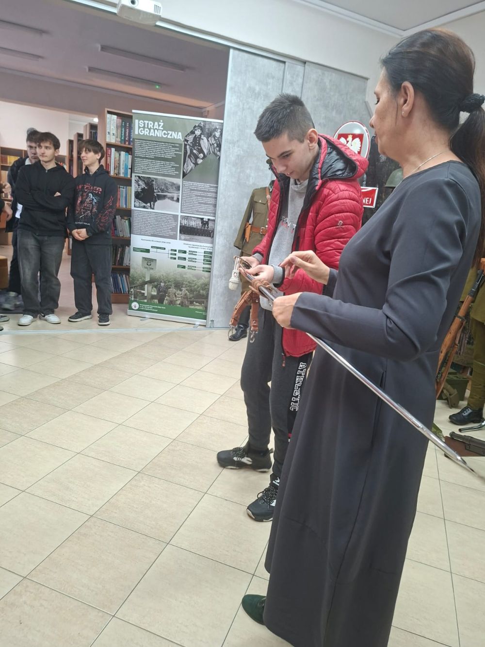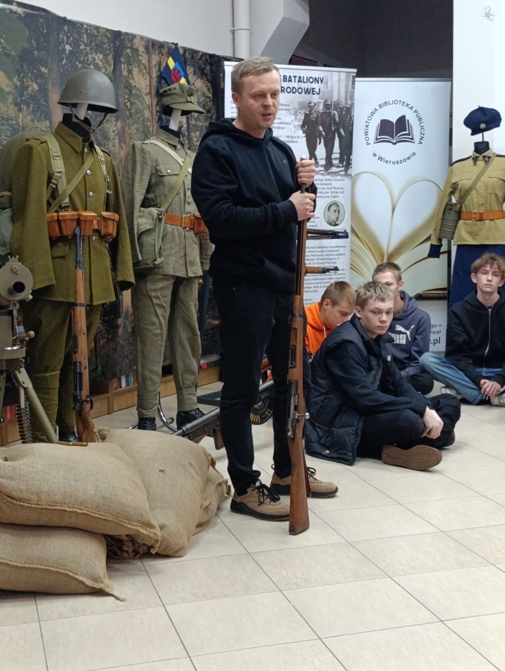 Podczas pobytu w bibliotece zwiedzający ekspozycję wysłuchali opowieści Prezesa Stowarzyszenia Historycznego „Gloria Victis”, pana Ireneusza Karbowskiego, który z wielką pasją przybliżył nie tylko wydarzenia ogólnopolskie, ale również te rozgrywające się w naszym regonie. Prelekcja, wzbogacona o prezentację eksponatów, była fascynującą podróżą w przeszłość – lekcją o odwadze, poświęceniu i bohaterstwie polskich żołnierzy.