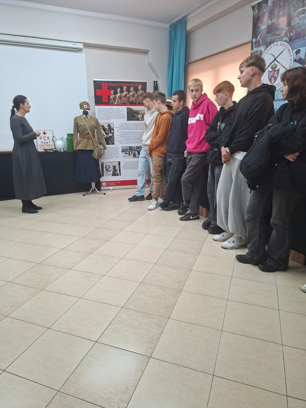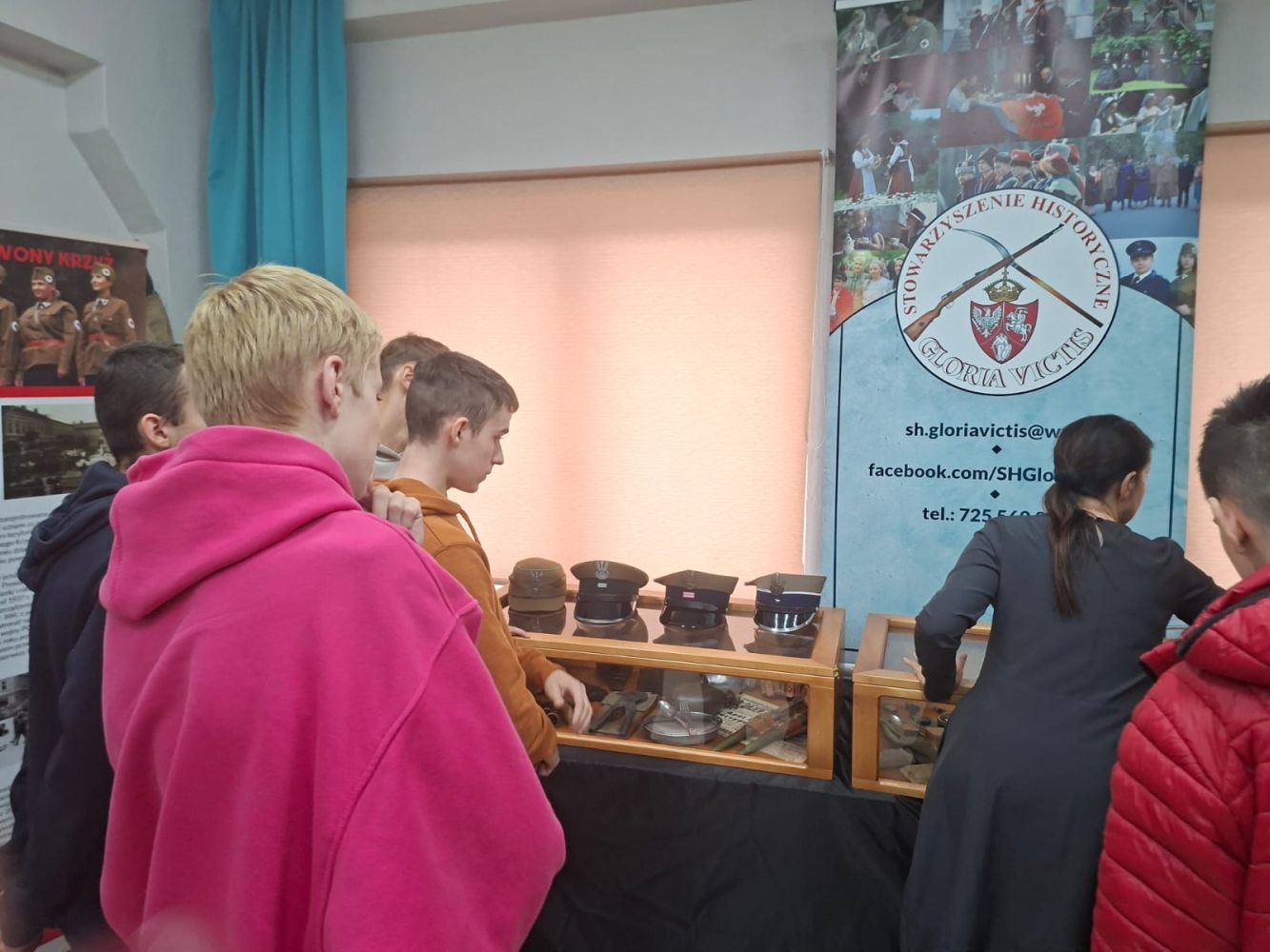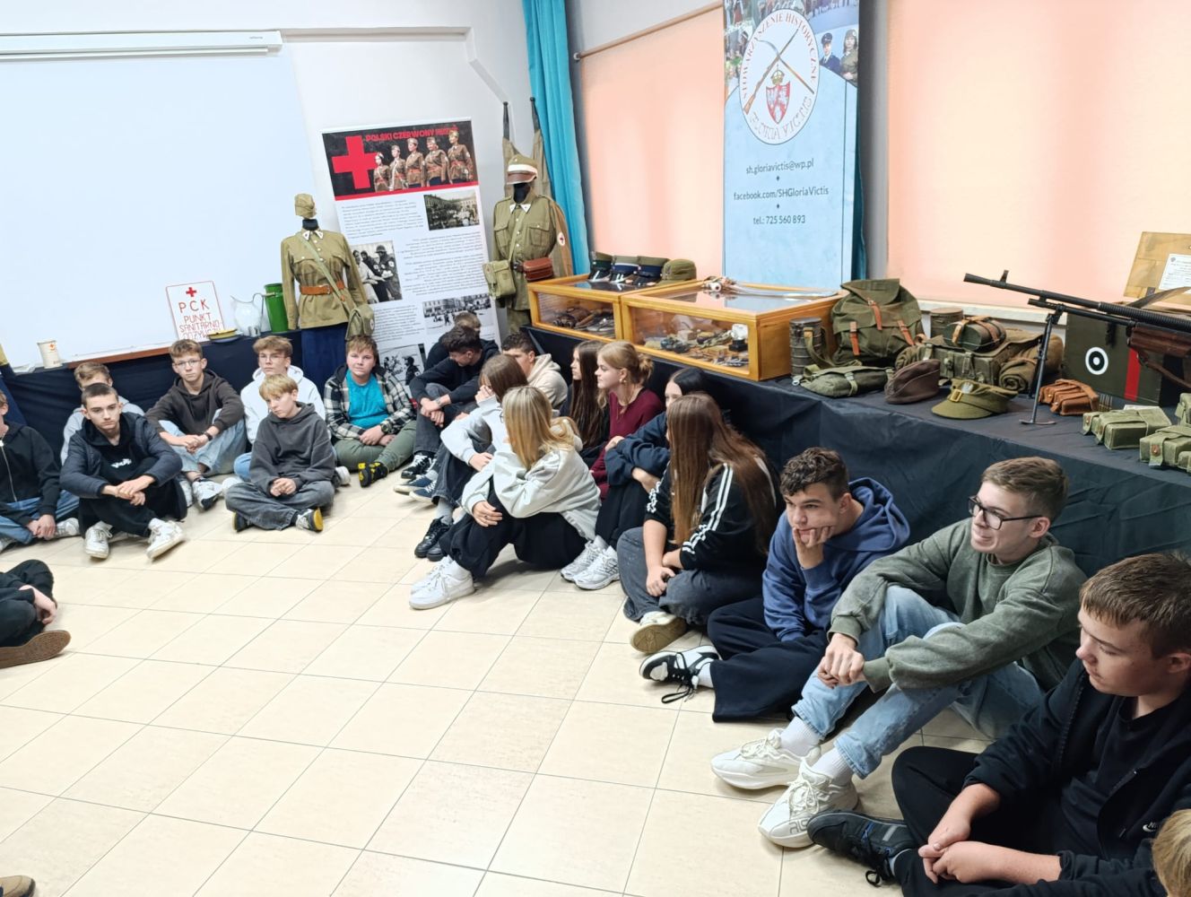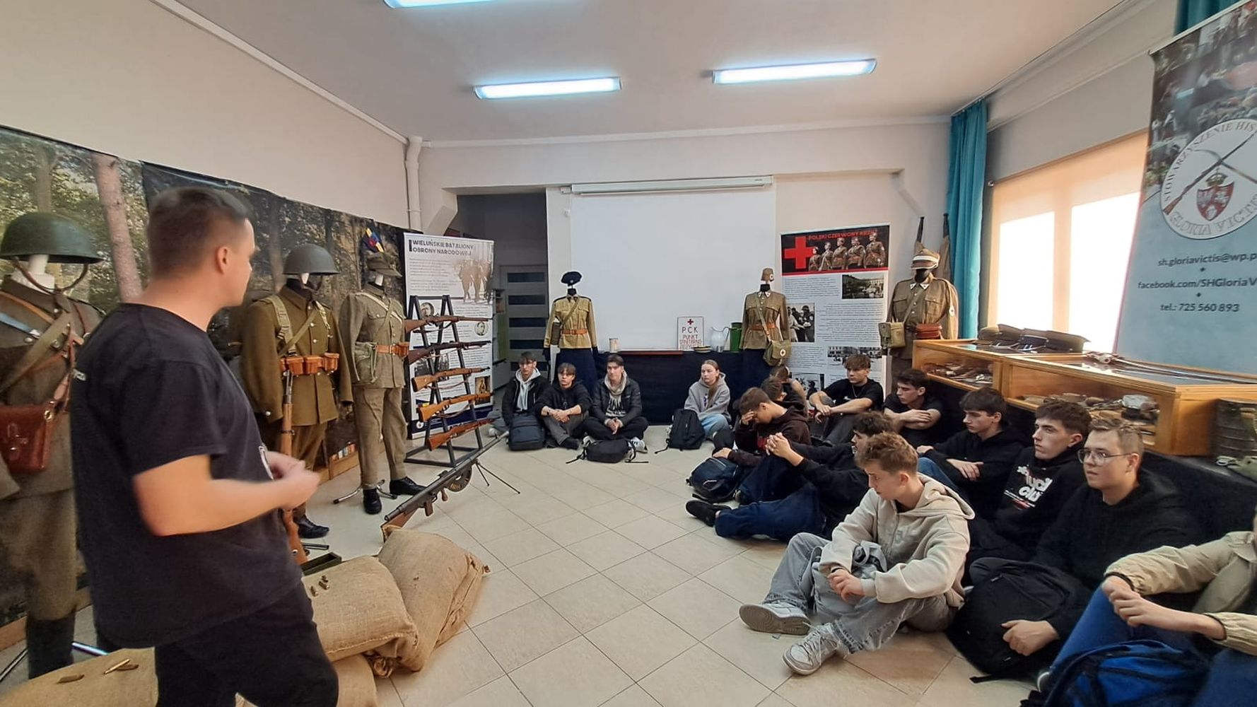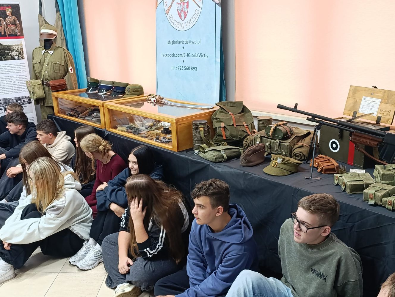 Podczas pobytu w bibliotece zwiedzający ekspozycję wysłuchali opowieści Prezesa Stowarzyszenia Historycznego „Gloria Victis”, pana Ireneusza Karbowskiego, który z wielką pasją przybliżył nie tylko wydarzenia ogólnopolskie, ale również te rozgrywające się w naszym regonie. Prelekcja, wzbogacona o prezentację eksponatów, była fascynującą podróżą w przeszłość – lekcją o odwadze, poświęceniu i bohaterstwie polskich żołnierzy.