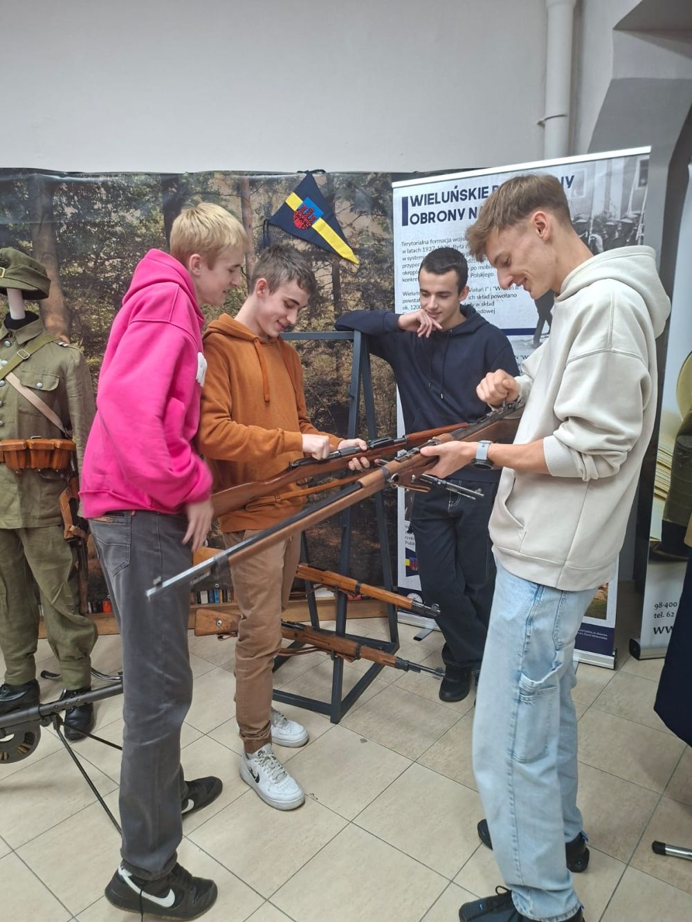 Uczniowie „Staszica” na początku października odwiedzili Powiatową Bibliotekę Publiczną w Wieruszowie, gdzie zaprezentowano wystawę pt. „Wojsko Polskie w wojnie obronnej 1939 roku”. Młodzież z klas 1TiB, 4TI1 i 4TL2 zobaczyła z bliska umundurowanie, uzbrojenie, wyposażenie, a także unikalne pamiątki i dokumenty z czasów kampanii wrześniowej.